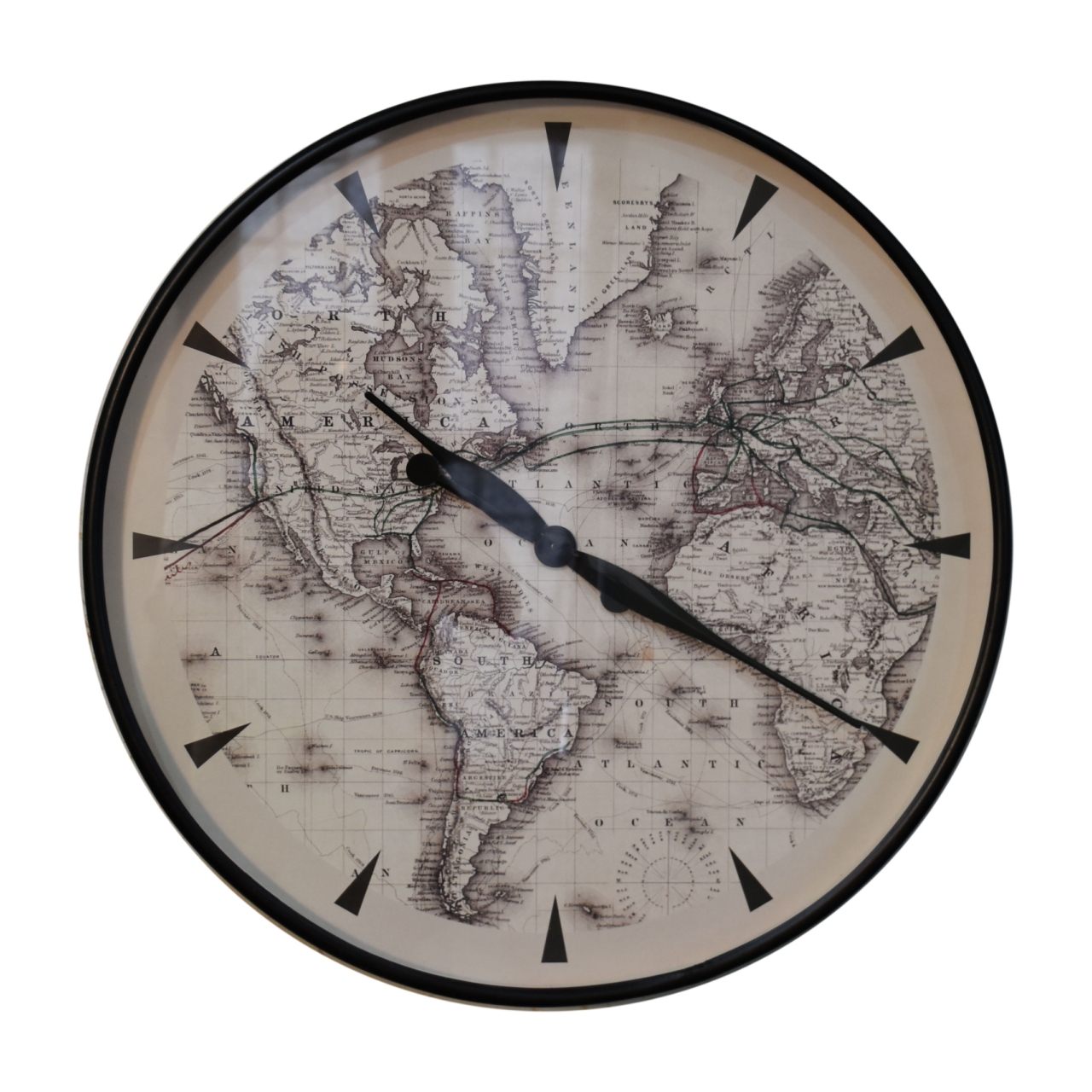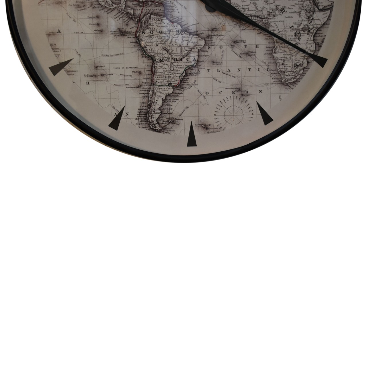 This stunning atlas wall clock makes a stunning feature against a plain wall. Elegantly classic and decorative, black pointed hands are well contrasted against the background of an atlas. Creating an impressive wall feature as well as a useful timepiece.